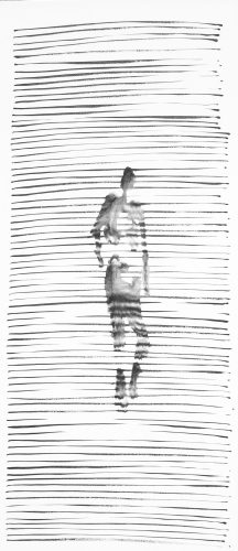 "Entstehen, männl. - weibl." II, 2005, Tusche auf Leinwand, 110 x 110 cm