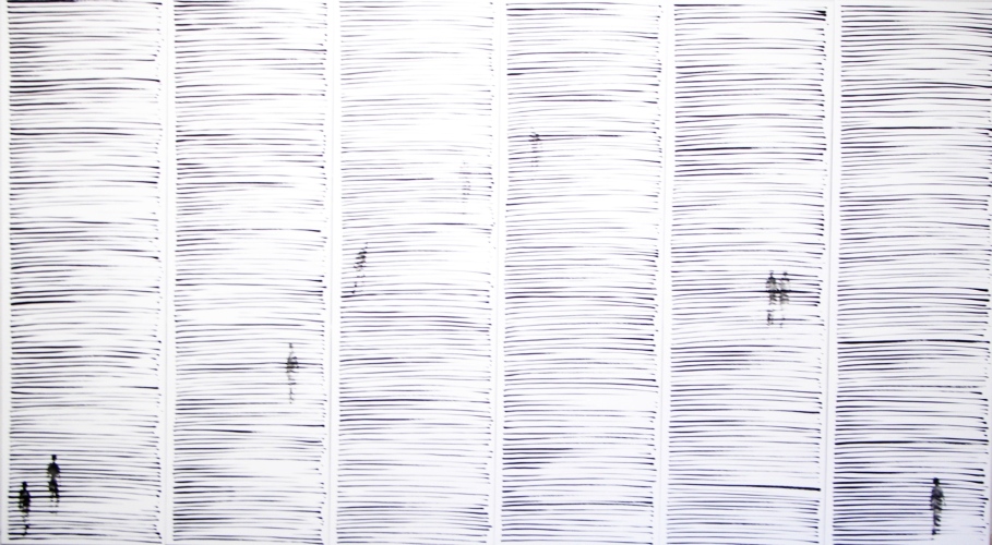 "Entstehen - Bereich1", 2006, Tusche auf Leinwand, 180 x 360 cm