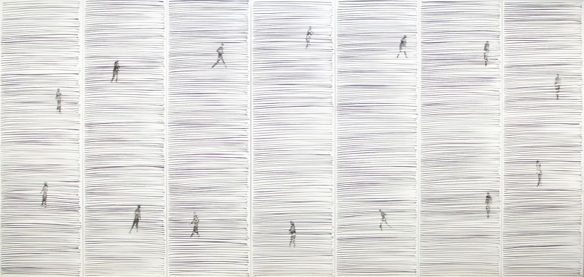 "Kreisläufer", 2011, Tusche a.L., 200x420 cm (7 Teile)