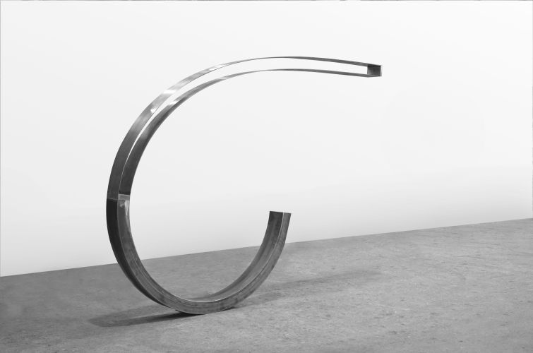 "Bogen, Öffnung", 2015, Stahl, Federstahl, 144 x 196 x 14 cm