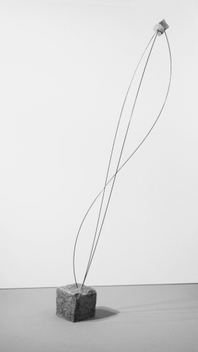"Wechselwirkung" V, 2008, Stein, Federstahl, 177 x 73 x 34 cm